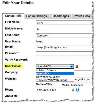 Media-Geek.com members now have another option and can choose JoomlaFCK as their WYSIWYG editor by simply editing their profile options.