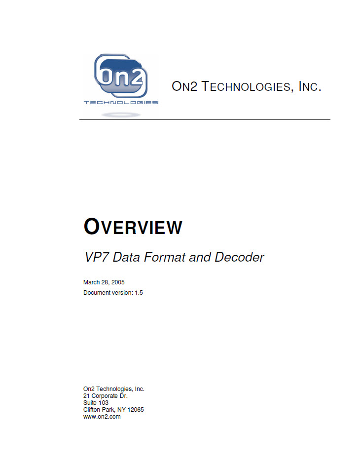 Detailed "overview" of the VP7 video compression scheme, including details regarding decompression. Google acquired On2 in February 2010.