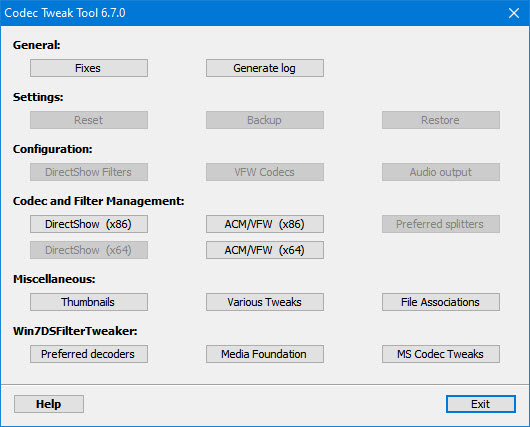 Codec Tweak Tool is a helpful utility for managing codecs/filters installed on your Windows system.