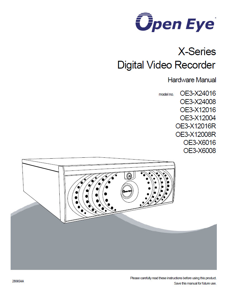 OpenEye X-Series Digital Video Recorder Hardware Manual. Supported models include: